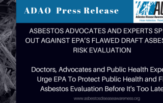 ADAO PRESS RELEASE: ASBESTOS ADVOCATES AND EXPERTS SPEAK OUT AGAINST EPA’S FLAWED DRAFT ASBESTOS RISK EVALUATION