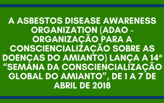 A Organização de Consciencialização sobre a Asbestose (ADAO) Lança a 15ª “Semana Global Anual de Consciencialização sobre o Amianto”, que terá lugar de 1 a 7 de Abril de 2019