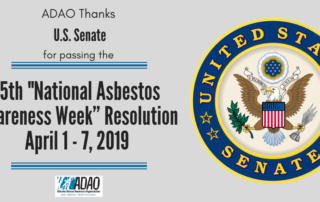 FOR IMMEDIATE RELEASE: March 5, 2019 ADAO Applauds the U.S. Senate for Unanimously Passing the Fifteenth Resolution (S.Res.92) Designating April 1-7 “National Asbestos Awareness Week” Washington DC — The Asbestos Disease Awareness Organization (ADAO), an independent [...]
