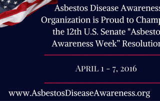 FOR IMMEDIATE RELEASE: The Asbestos Disease Awareness Organization Praises Senator Markey for Introducing the Twelfth Annual Resolution Establishing “National Asbestos Awareness Week” 2016 Asbestos Awareness Week Gains National MomentumWashington, D.C. – February 25, 2016 – [...]