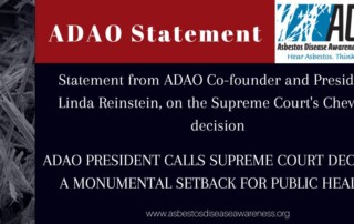 FOR IMMEDIATE RELEASE September 30, 2024 ADAO ASKS COURT TO REQUIRE EPA TO STRENGTHEN CHRYSOTILE RULE TO BETTER PROTECT AMERICANS FROM ASBESTOS EXPOSURE Brief Highlights Fatal Gaps and Omissions in EPA Part 1 Final Asbestos [...]