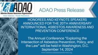 ADAO Release: HONOREES AND KEYNOTE SPEAKERS ANNOUNCED FOR THE 20TH ANNIVERSARY INTERNATIONAL ASBESTOS AWARENESS AND PREVENTION CONFERENCE