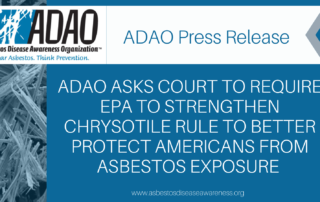 RELEASE: ADAO ASKS COURT TO REQUIRE EPA TO STRENGTHEN CHRYSOTILE RULE TO BETTER PROTECT AMERICANS FROM ASBESTOS EXPOSURE