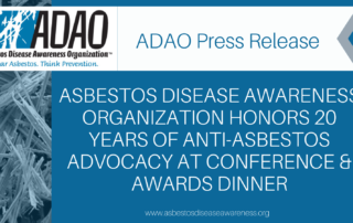 PRESS RELEASE: ASBESTOS DISEASE AWARENESS ORGANIZATION HONORS 20 YEARS OF ANTI-ASBESTOS ADVOCACY AT CONFERENCE & AWARDS DINNER