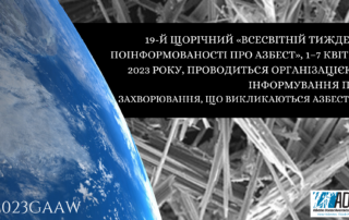 19-Й ЩОРІЧНИЙ «ВСЕСВІТНІЙ ТИЖДЕНЬ ПОІНФОРМОВАНОСТІ ПРО АЗБЕСТ», 1–7 КВІТНЯ 2023 РОКУ, ПРОВОДИТЬСЯ ОРГАНІЗАЦІЄЮ З ІНФОРМУВАННЯ ПРО ЗАХВОРЮВАННЯ, ЩО ВИКЛИКАЮТЬСЯ АЗБЕСТОМ