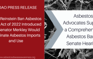 Joint Press Release: MERKLEY, BONAMICI INTRODUCE BICAMERAL LEGISLATION TO BAN ASBESTOS AND SAVE LIVES https://bit.ly/3wEB46m ‘‘Alan Reinstein Ban 5 Asbestos Now Act of 2022’’ text Posted on May 18, 2022 THE ASBESTOS DISEASE AWARENESS ORGANIZATION [...]