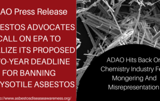 ADAO Release: ASBESTOS ADVOCATES CALL ON EPA TO FINALIZE ITS PROPOSED TWO-YEAR DEADLINE FOR BANNING CHRYSOTILE ASBESTOS