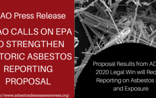 Release: ADAO CALLS ON EPA TO STRENGTHEN HISTORIC ASBESTOS REPORTING PROPOSAL || Proposal Results from ADAO’s 2020 Legal Win will Require Reporting on Asbestos Risk and Exposure