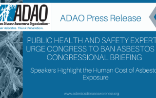 FOR IMMEDIATE RELEASE August 17, 2022 PUBLIC HEALTH AND SAFETY EXPERTS URGE CONGRESS TO BAN ASBESTOS IN CONGRESSIONAL BRIEFING Speakers Highlight the Human Cost of Asbestos Exposure Washington, DC — The Asbestos Disease Awareness Organization [...]