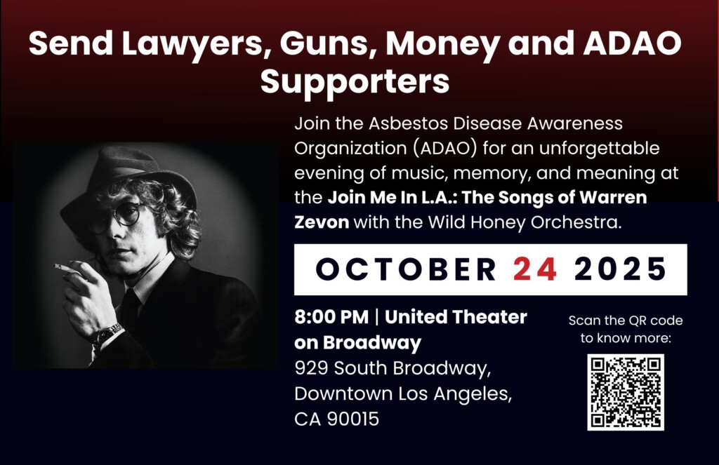 The Asbestos Disease Awareness Organization (ADAO) is the largest independent asbestos victims’ organization in the U.S. It was founded in 2004 to give asbestos victims and concerned citizens a united voice, to raise public awareness about the dangers of asbestos exposure and to work towards a global asbestos ban. ADAO is dedicated to preventing consumer, environmental and occupational asbestos-caused diseases through national and international education, advocacy, and community initiatives. Read more about ADAO and “Who We Are”.