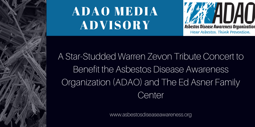 Media Advisory: A Star-Studded Warren Zevon Tribute Concert to Benefit the Asbestos Disease Awareness Organization (ADAO) and The Ed Asner Family Center